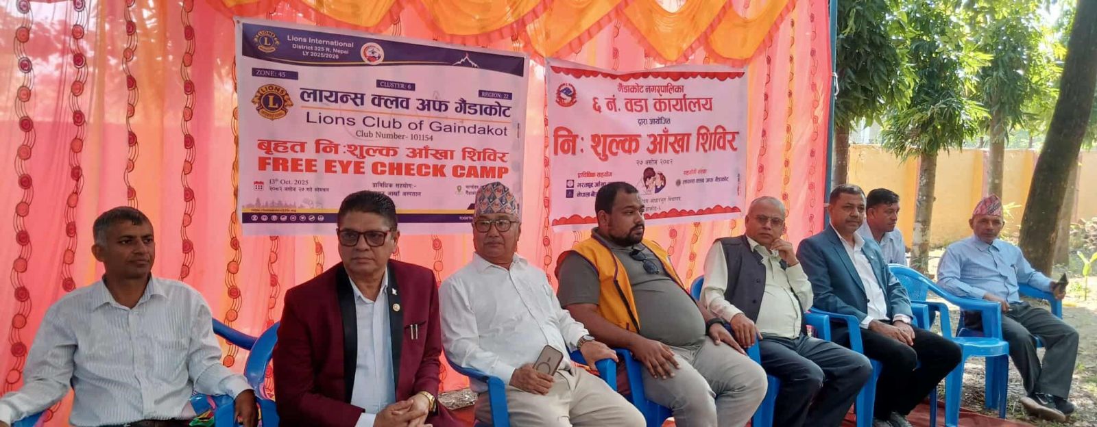 त्यस्तै, आँखा शिविरमा मोतियाबिन्दु, जलबिन्दु भएका, आँखामा मासु पलाएका तथा परेला फर्किएका र विगतमा छनोट भएका बिरामीहरूको निःशुल्क शल्यक्रिया गरिने शिविरका संयोजक एवं लायन्स क्लब अफ गैंडाकोटका पूर्व अध्यक्ष लायन गोविन्द सुवेदीले जानकारी दिनुभयो ।