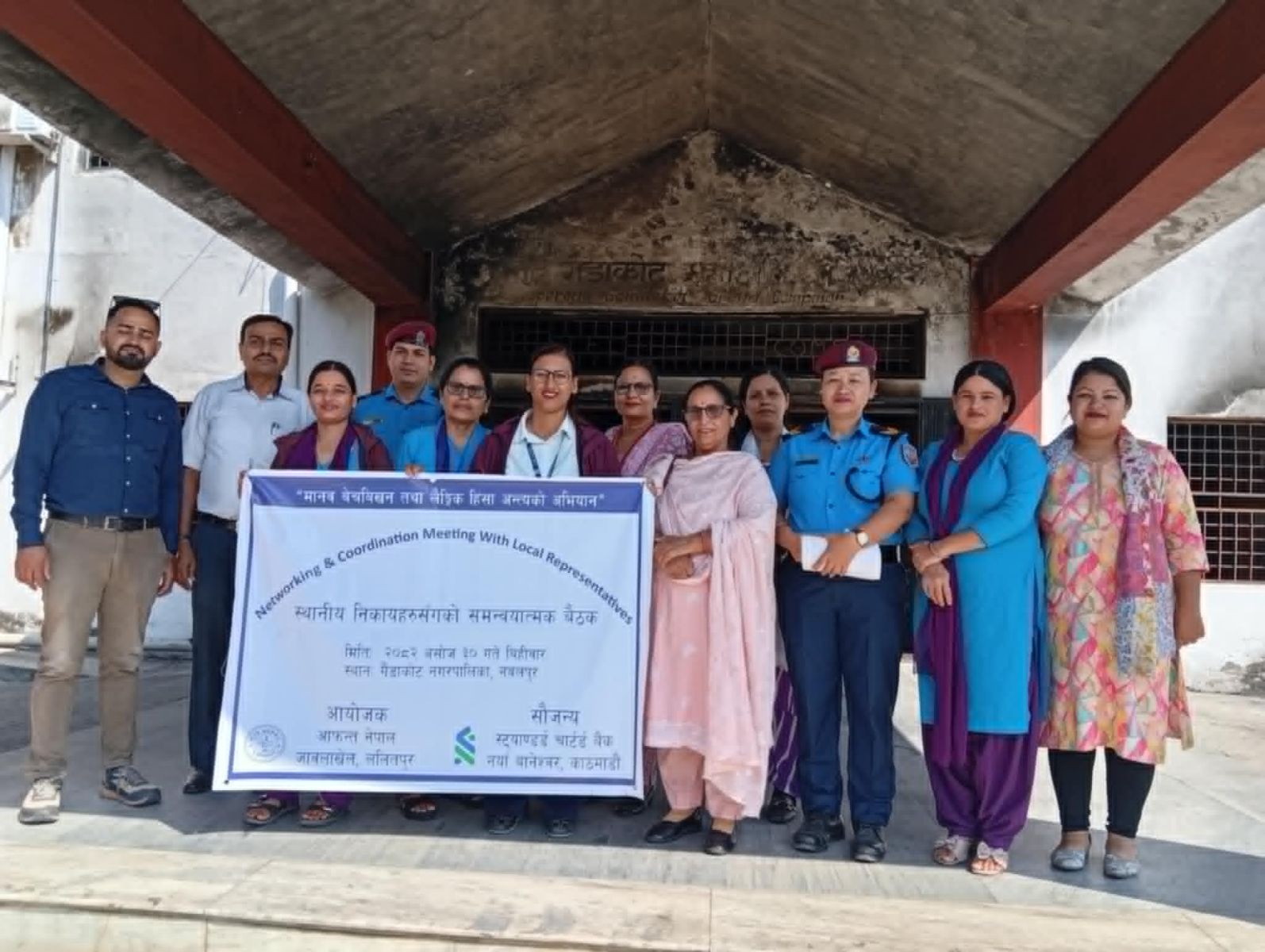 गैंडाकोटमा “मानव बेचबिखन तथा लैङ्गिक हिंसा अन्त्यको अभियान”अन्तर्गत स्थानीय निकायहरुसँगको समन्वयात्मक बैठक सम्पन्र
