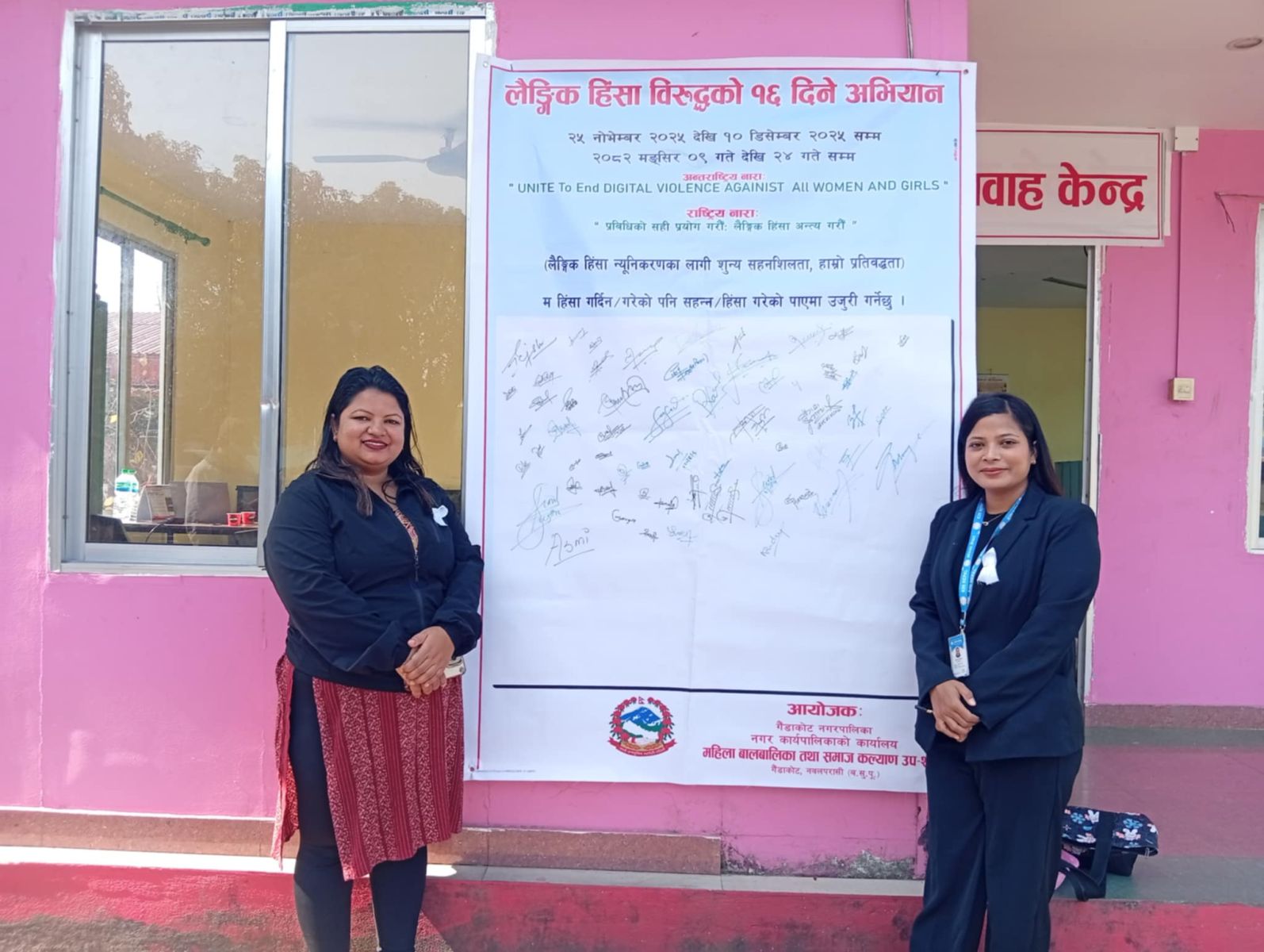 गैंडाकोट । गैंडाकोट नगरपालिकाले मंगलबार आजदेखि लैङ्गिक हिंसा विरुद्धको १६ दिने अभियान सुरु गरेको छ । ‘प्रविधिको सही प्रयोग गरौँः लैङ्गिक हिंसा अन्त्य गरौँ’ भन्ने मूल नाराका साथ लैङ्गिक हिंसा विरुद्धको १६ दिने अभियान सुरु भएको हो । गैंडाकोट नगरपालिकाको आयोजना तथा आफन्त नेपालको सहकार्यमा एक कार्यक्रमकाबीच अन्तरक्रिया तथा प्रतिबद्धता पत्रमा हस्ताक्षर गरेर कार्यक्रमको शुभारम्भ गरिएको थियो ।
