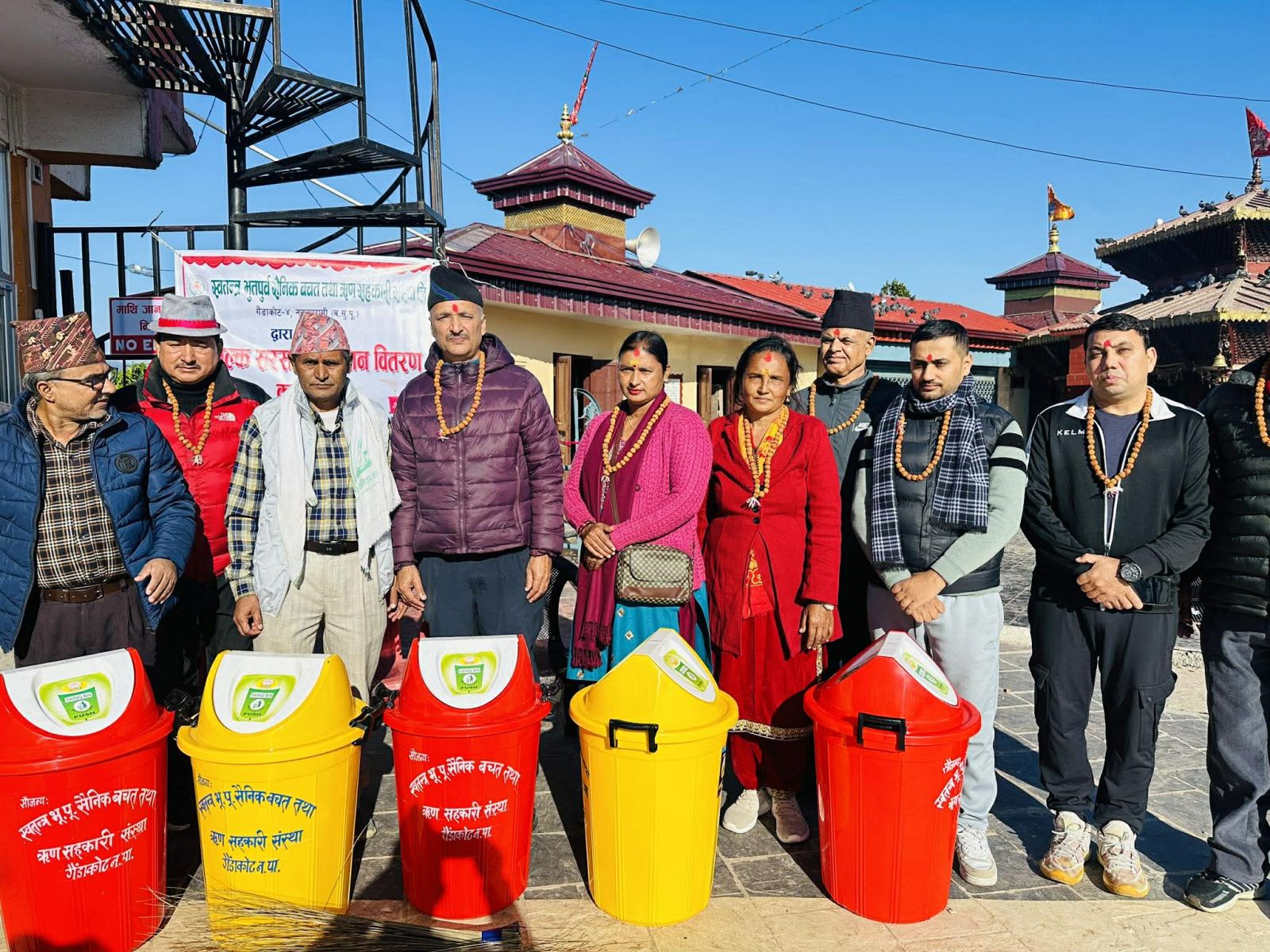 स्वतन्त्र भूतपूर्व सैनिक सहकारीद्धारा गैँडाकोटका सात मन्दिरमा सरसफाइका सामग्री वितरण