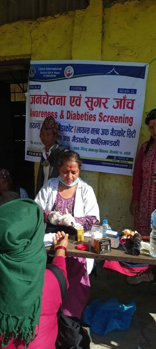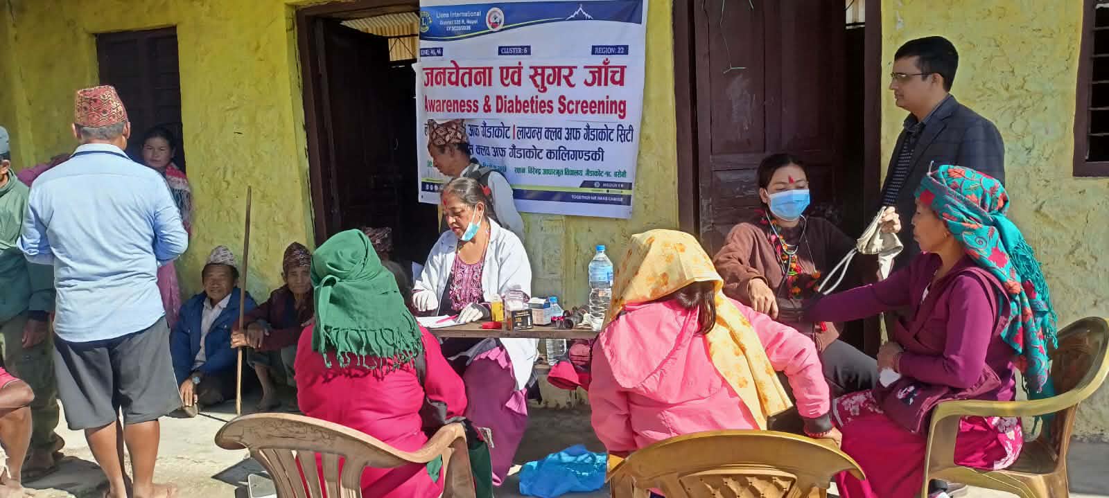 गैंडाकोटमा लायन्स क्लबहरुको संयुक्त न्यानो कपडा, स्टेशनरी वितरण तथा मधुमेह परिक्षण