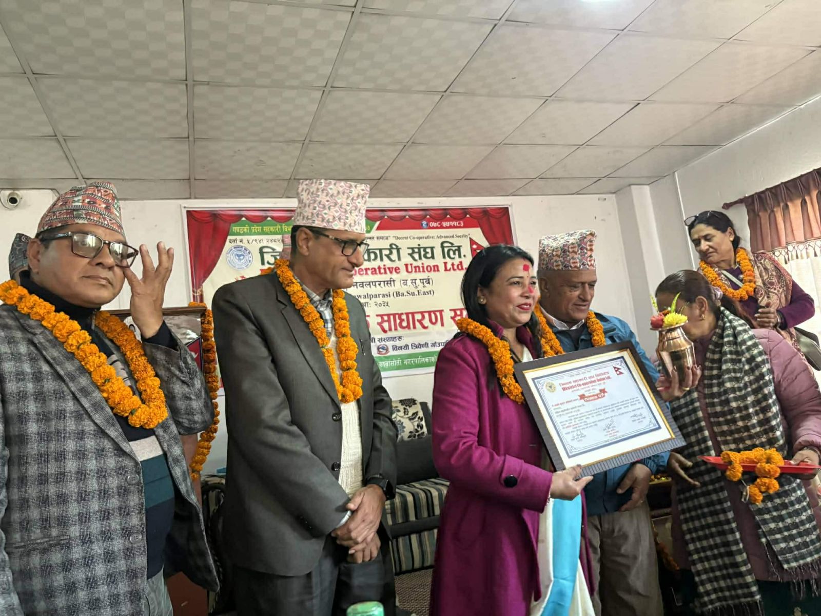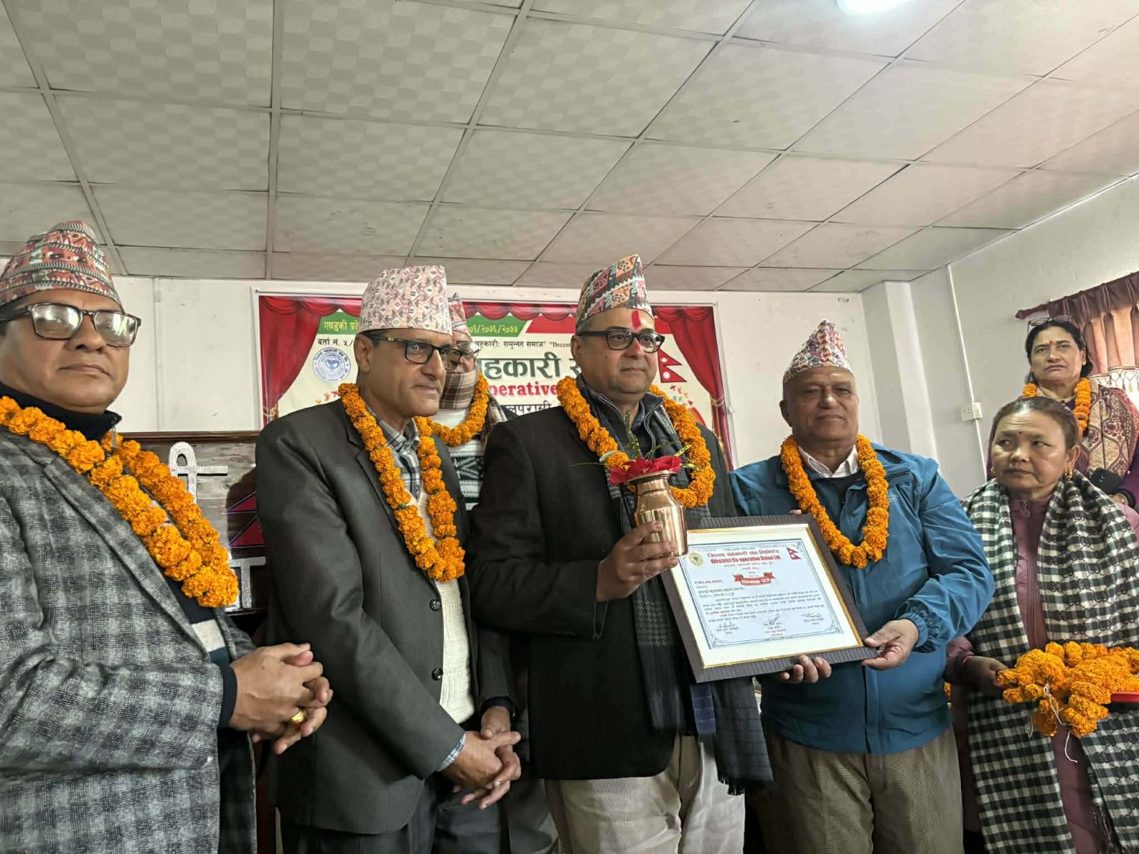 निर्वाचन समिति संयोजक चेतनाथ भुसाल तथा सदस्यहरू दयाराम पौडेल र गीता भण्डारीले नवनिर्वाचित पदाधिकारीहरूलाई शपथ ग्रहण गराउनुका साथै पद हस्तान्तरण गराउनुभएको थियो ।