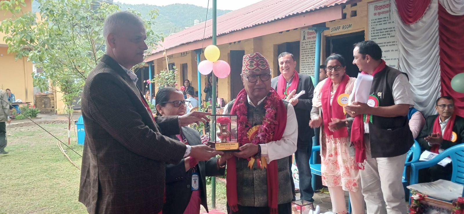 गैडाकोट नगरपालिकाका नगर शिक्षा अधिकृत रामप्रसाद अधिकारीले विद्यालयले शैक्षिक सुधारलाई अझै बढाउँदै लैजान आग्रह गर्नुभयो ।