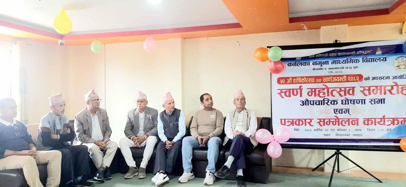 स्वर्ण जयन्ती समारोह घोषणा तथा पत्रकार सम्मेलनमा पूर्व अध्यक्षहरु, पूर्व प्रधानाध्यापकहरु, पूर्व विद्यार्थी, शिक्षक अभिभावक लगायतको उपस्थिति रहेको कार्यक्रममा विद्यालयका संस्थापक अध्यक्ष शालिकराम सापकोटाले स्वर्ण महोत्सव समारोहको लोगो अनावरण गर्नुभएको थियो ।