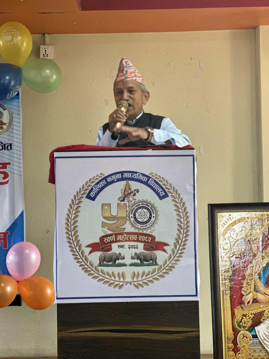 कार्यक्रममा संस्थापक अध्यक्ष शालिकराम सापकोटाले विद्यालयको स्वर्ण महोत्सव समारोह सफल पार्न सबैमा अनुरोध गर्नुभयो ।