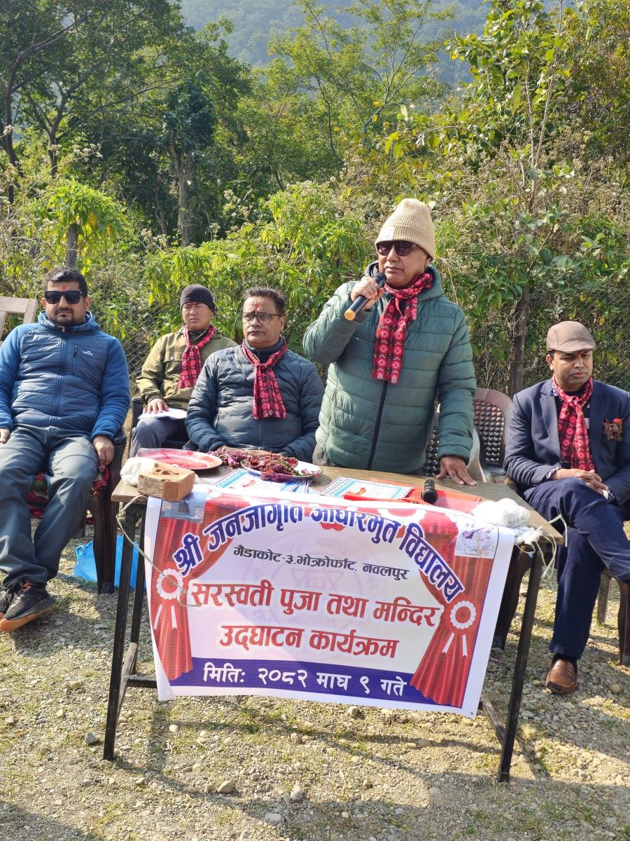 गैँडाकोट । जनजागृति आधारभूत विद्यालय गैँडाकोट वडा नं ३ मा सरस्वती पुजा अर्चना, मुर्ति प्रतिस्थापनसहित सरस्वती मन्दिरको समुद्घाटन गरिएको छ ।
