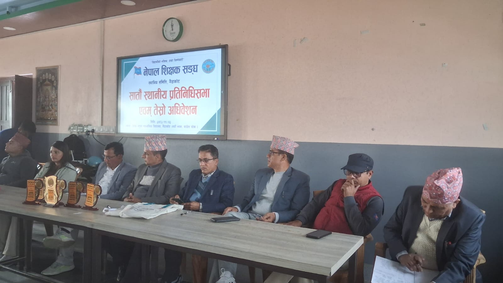 प्रतिनिधि सभाका लागि फोकल पर्सन नेपाल शिक्षक महासंघका जिल्ला अध्यक्ष चन्द्रदेव तिवारी, नेपाल शिक्षक महासंघ नवलपुरका उपाध्यक्ष हिमालदेव पंगेनी, नेपाल शिक्षक महासंघ गैँडाकोट नगर अध्यक्ष शिवराज काफ्ले, जनक नमुना मा।विका प्रधानाध्यापक बुद्धिसागर पण्डित लगायतले शुभकामना मन्तव्य राख्नुभएको थियो । नेपाल शिक्षक संघ नगर अध्यक्ष सूर्यनाथ तिवारीको अध्यक्षतामा सम्पन्न सो सभाको सहजीकरण सचिव मोहन भण्डारीले गर्नुभएको थियो ।
